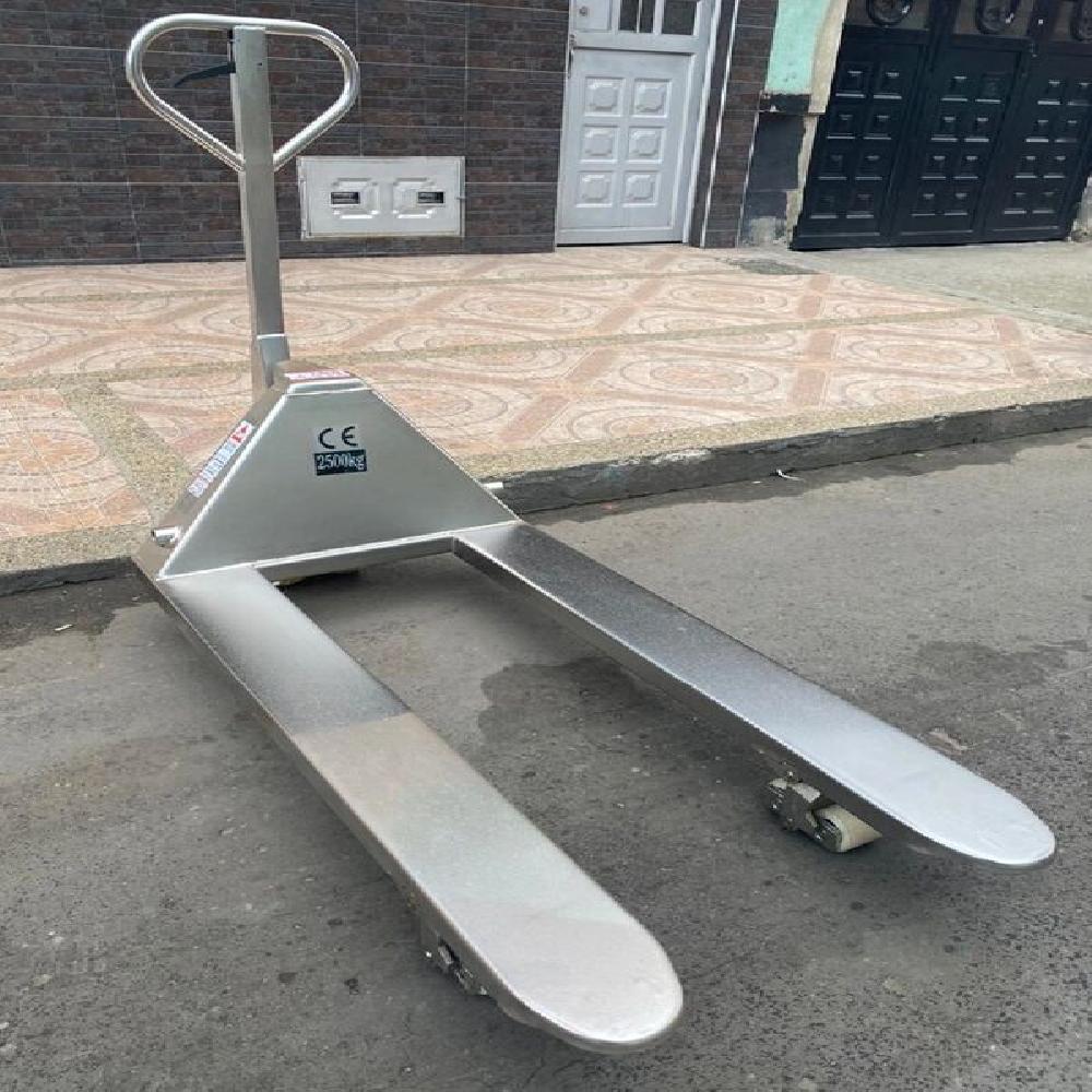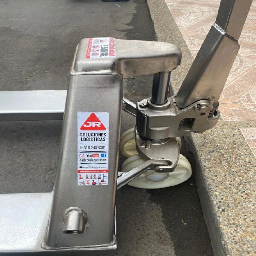 Todas las partes estan fabricadas en acero inoxidable incluyendo bomba hidráulica, marco de los tenedores, manija, varilla de empuje, soporte, perno y tornillo, entre otros.