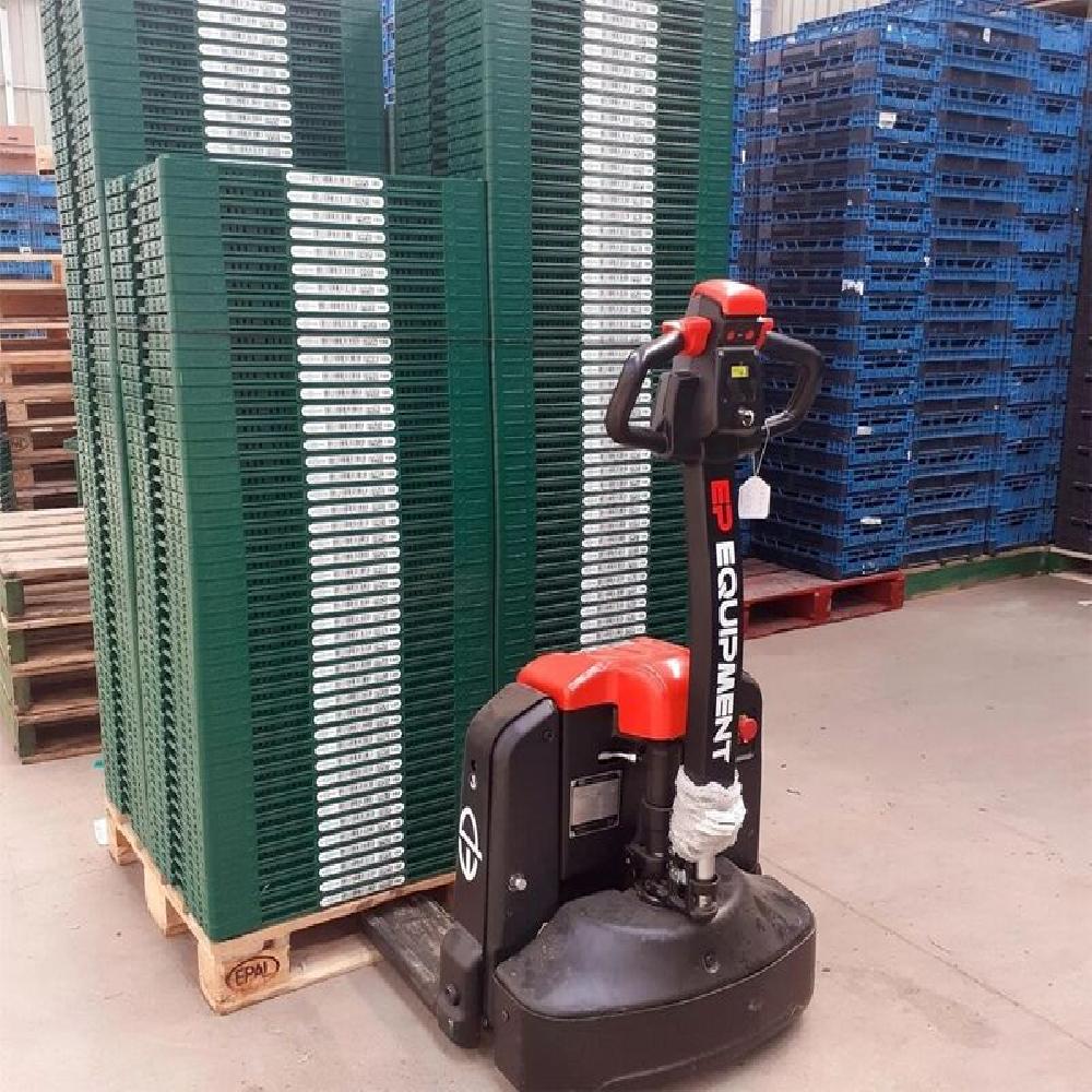 Estibadores eléctricos de EP Equipment, representa la vanguardia en tecnología y diseño. Este innovador estibador presenta una batería de iones de litio de última generación con cargador integrado.